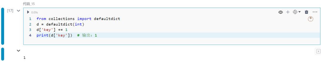 from collections import defaultdictd = defaultdict(int)d['key'] += 1print(d['key'])