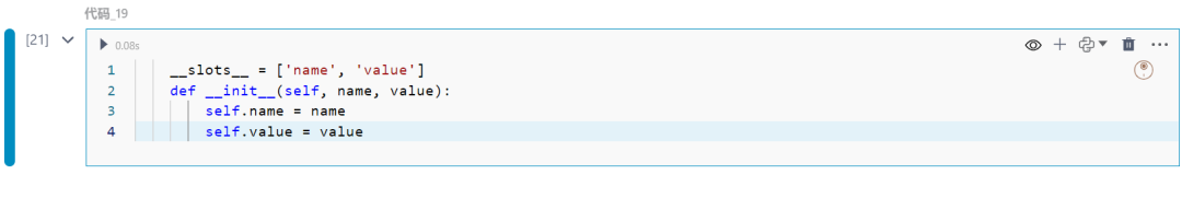 class MyClass: __slots__ = ['name', 'value'] def __init__(self, name, value): self.name = name self.value = value