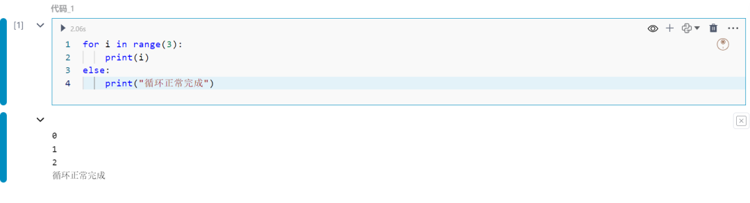 可以在for或while循环中使用else块。如果循环正常完成(没有遇到break语句),则会运行该块。