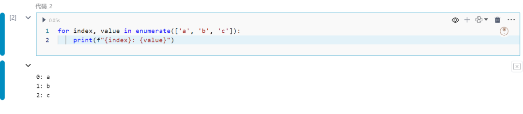 for index, value in enumerate(['a', 'b', 'c']): print(f"{index}: {value}")