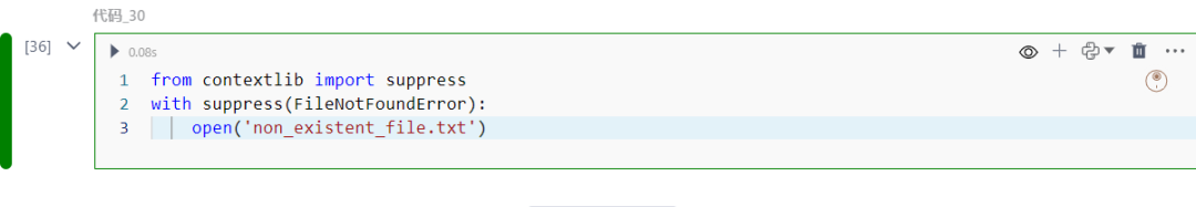 from contextlib import suppresswith suppress(FileNotFoundError): open('non_existent_file.txt')