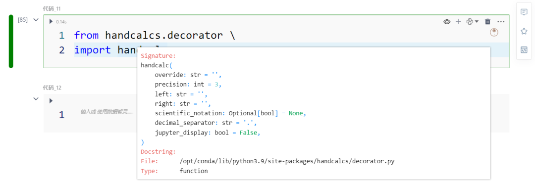 - 科学/工程计算:Handcalcs 可以使科学。工程计算过程更加清晰,方便调试和理解。