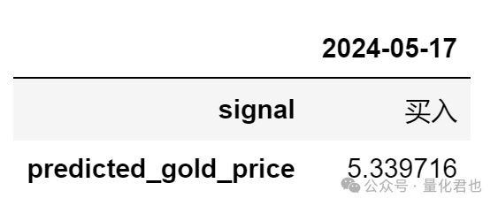 data['signal'] = np.where(data.predicted_gold_price.shift(1) < data.predicted_gold_price, '买入' , '空仓')