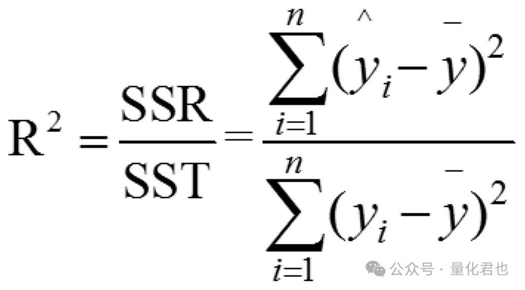 那就是决定系数R2了,坊间一般称为“R方”,计算公式如下。