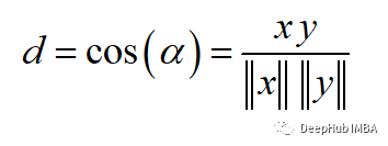 余弦相似度可以介于-1(相反方向)和1(相同方向)之间,计算方法为: