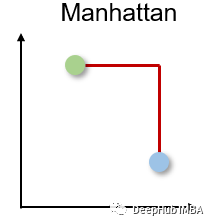 曼哈顿距离也被称为出租车或城市街区距离,因为两个实值向量之间的距离是根据一个人只能以直角移动计算的。这种距离度量通常用于离散和二元属性,这样可以获得真实的路径。
