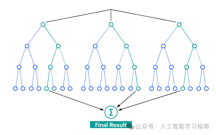 在随机森林中,每棵树都会做出一个预测,对于分类任务,模型的预测结果属于获得最多投票的类别;