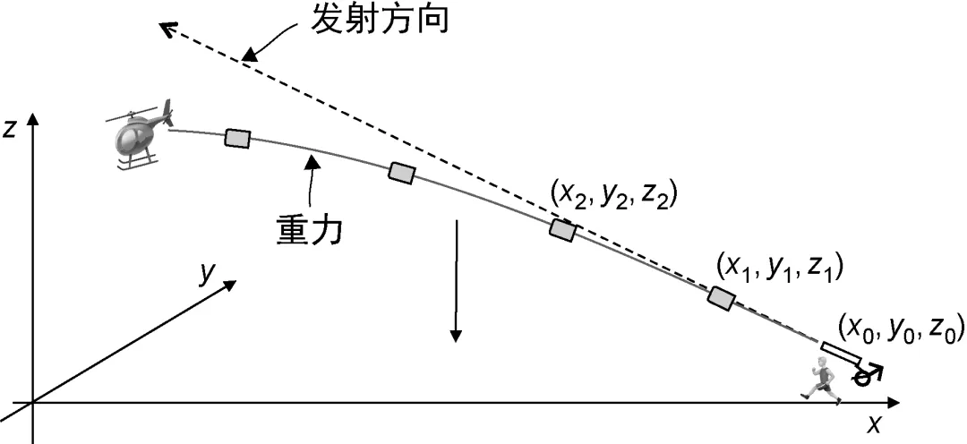 假设你是《侠盗猎车手5》的程序员,想实现一个基础用例,比如向直升机发射火箭炮。从主角的位置开始发射炮弹后,炮弹的位置会随着时间的推移而改变。可以使用数值下标来标注炮弹在飞行过程中的各个位置,从