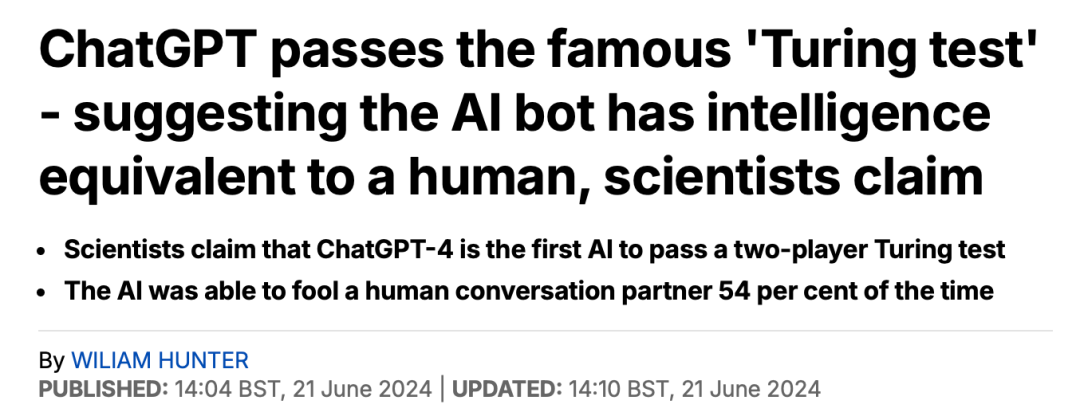 各大媒体也发表了类似的标题,例如某家报纸报道称,「ChatGPT 通过了著名的『图灵测试』—— 表明该 AI 机器人具有与人类相当的智能。」