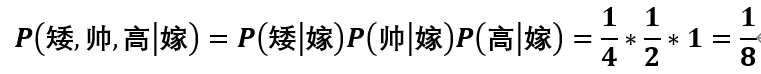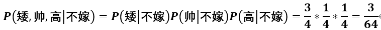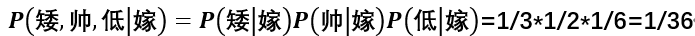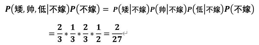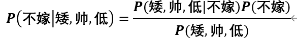 现在又来了一个男士新的特征(矮,帅,低),来进行预测嫁与不嫁,当我们进行计算
