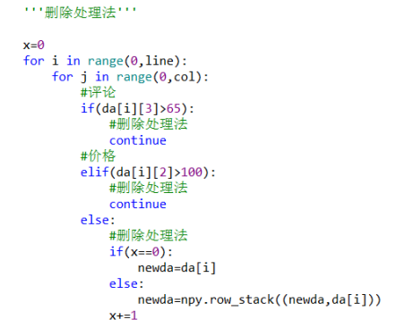 根据上图所示,将评论大于100000,价格大于1000的数据都处理掉,就可以达到处理异常值的效果。而具体的两种处理方法的实现过程如下: