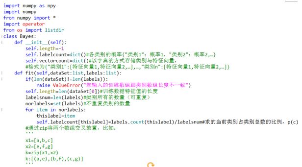跟KNN算法一样,贝叶斯算法也有两种实现方式,一种是详细的实现: