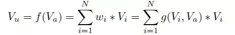 从这个角度来看,其实 AFM 就是个加权累加的过程。Attention Net 部分的权重 aij 不是直接学习,而是通过如下公式表示: