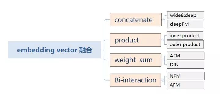 其中,embedding vector 这层的融合是深度学习模型改造最多的地方,该层是进入深度学习模型的输入层,embedding 融合的质量将影响 DNN 模型学习的好坏。
