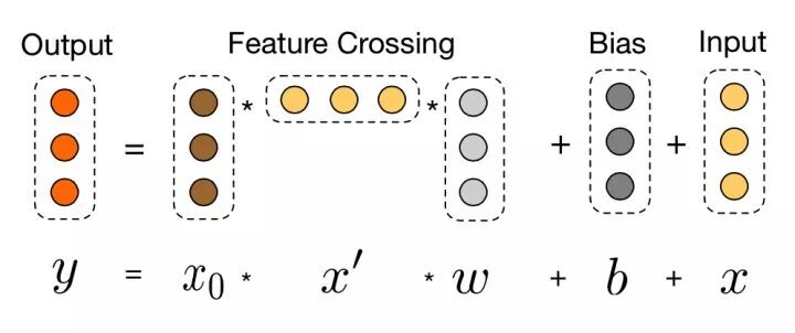 总结起来,DCN 引入的 Cross Network 理论上可以表达任意高阶组合,同时每一层保留低阶组合,参数的向量化也控制了模型的复杂度。