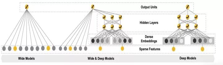 其次,在宽和深的大战中,在 Google 提出了 Wide & Deep 模型框架后,这套体系基本已成为业内的基本框架。无论 Wide 部分或者 Deep 怎么改造,其实本质上还是一些常见组件的结合,或者改造 Wide,或者改造 Weep,或者在 Wide 和 Deep 的结合过程中进行改造。