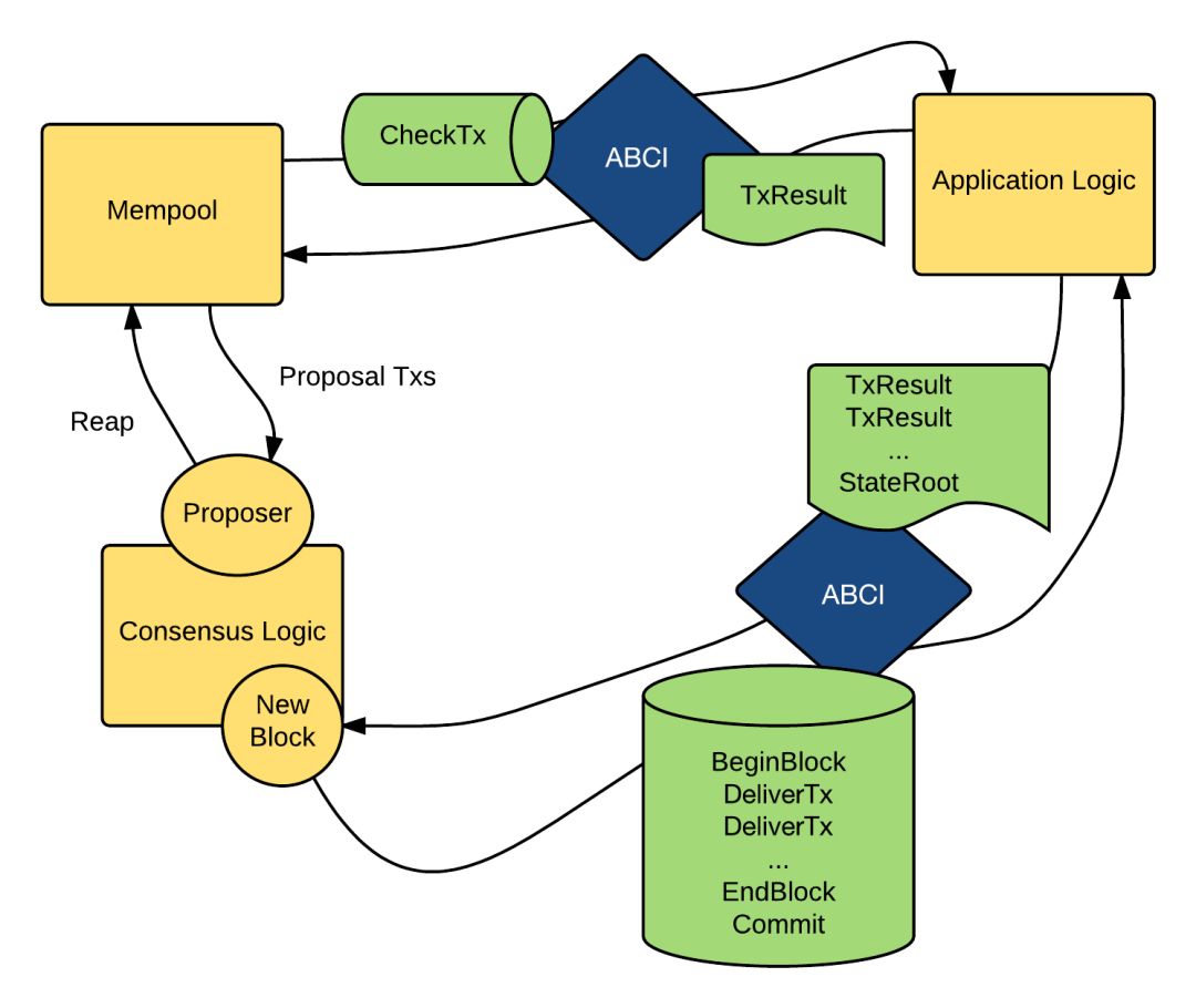 mempool 里的 TX 会被定期广播到所有节点。当 Tendermint 选出了 Proposal 节点后,它便会从 mempool