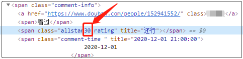 可以看到:3星的数字是30,其它的以此类推,1星的数字是10,2星的数字是20......我看着就是很不爽,因此我在爬取数据的时候,已经将这些数字,全都除以10后计算。