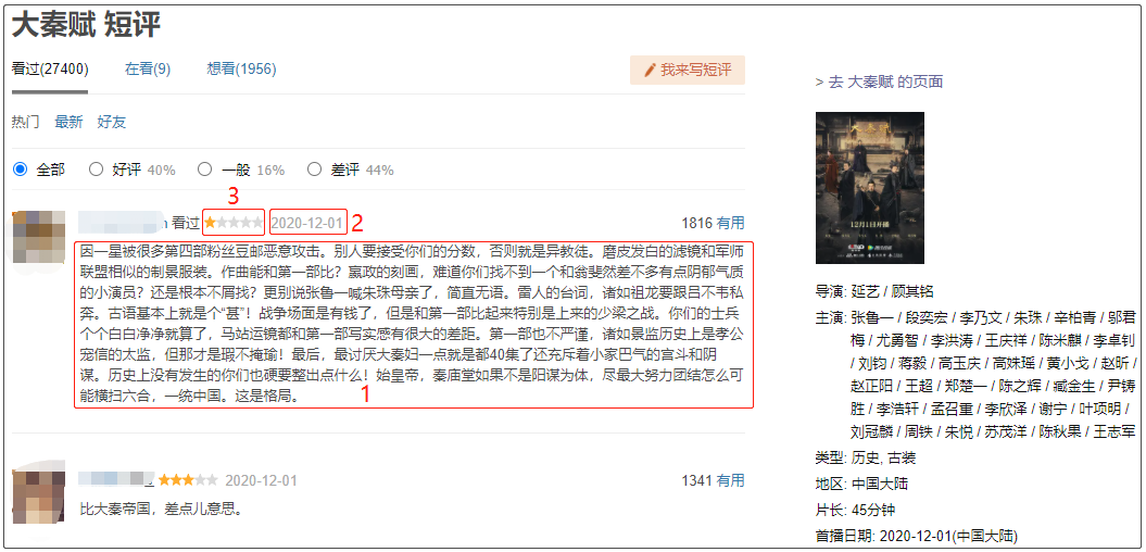 因此,我用Python爬取了《大秦赋》的相关数据,进行了一波分析。