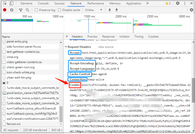 headers = { "Accept" :"application/json, text/plain, */*" , "Accept-Language" :"zh-CN,zh;q=0.9" , "Connection" :"keep-alive" , "Host" :"movie.douban.com" , "User-Agent" :'Mozilla/5.0 (Windows NT 10.0; Win64; x64) AppleWebKit/537.36 (KHTML, like Gecko) Chrome/87.0.4280.88 Safari/537.36' , "Cookie" :'这里是你自己的cookie' }