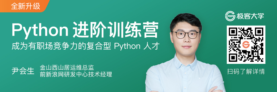 极客时间「 Python 进阶训练营 」将带你通过 70 天实战演练,手把手带你进阶 Python 高手。训练营可以带你掌握爬虫工程师必备技能、自动化运维工程师进阶技巧、Python 后端实战案例、数据处理与分析相关技巧。课程内容从一个简单的单线程爬虫案例开始,逐步扩展为多线程爬虫,紧接着对收集到的数据进行存储、清洗、分词以及情感分析,最后再通过 Web 清晰地展示给用户。更有助教 1v1 答疑指导,班主任全程带班督促,保证你的学习效果。学完之后,你可以胜任三大岗位:后端开发工程师、爬虫 / 反爬虫工程师、自动化运维工程师。
