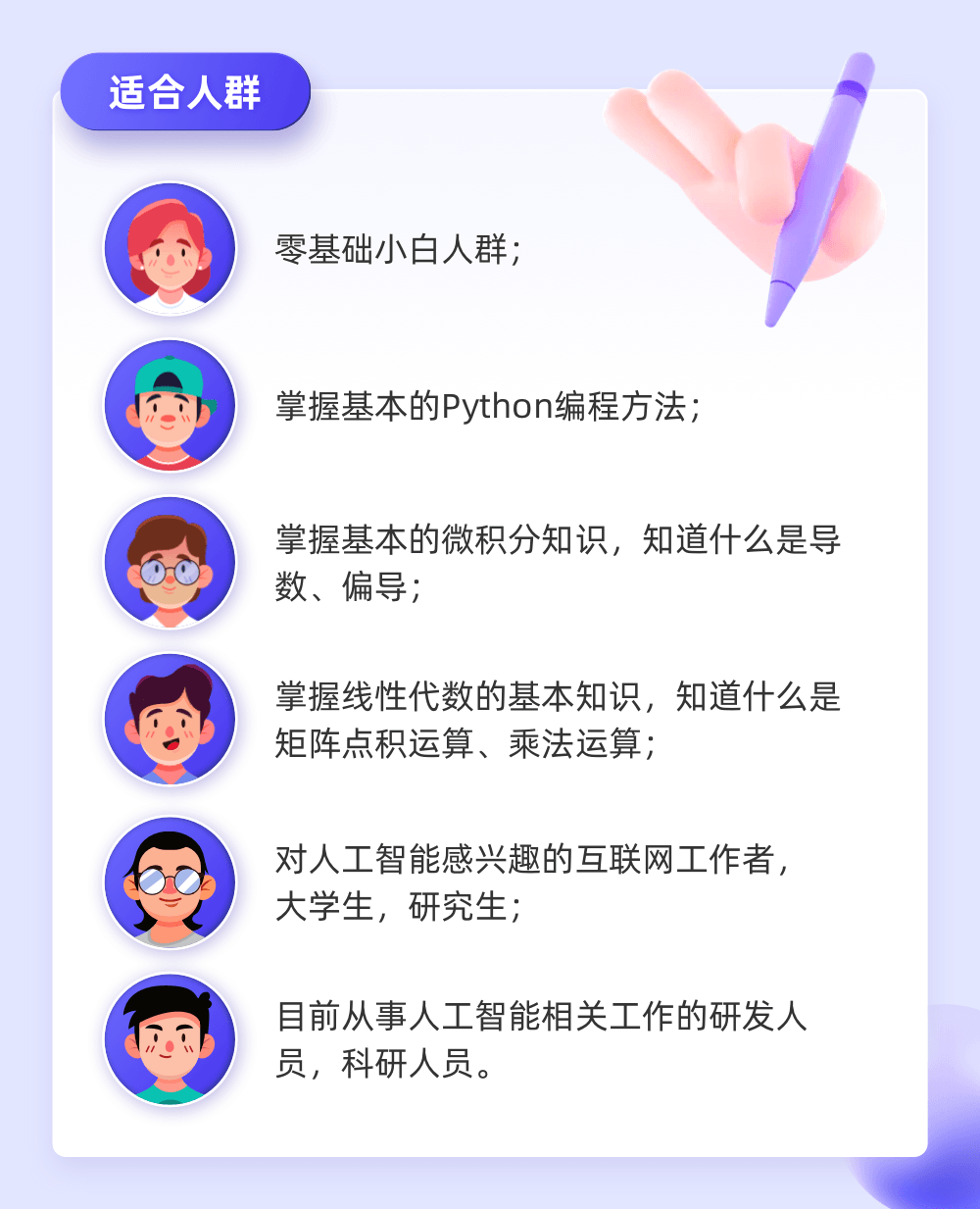 这次3天训练营,需要来参加课程的同学只需要掌握基本的Python编程方法就可以。相关的数学知识,会在课程给大家讲明白。