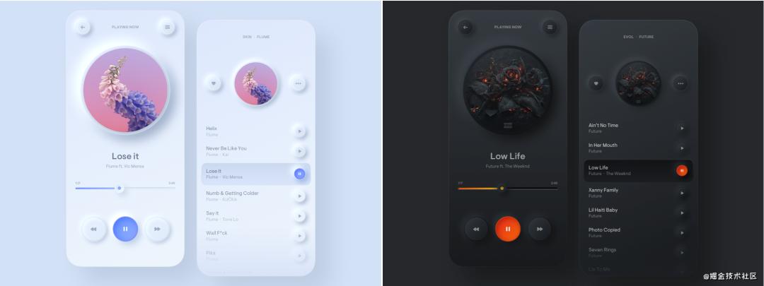 New(新)+skeuomorphism(拟物化)= Neumorphism(现代拟物风格)。