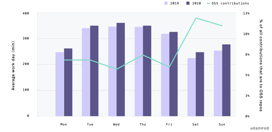 下面这张图还表明咱们周一的开发时间最少的,毕竟周一各种会议啥的,而且,自己还要缓冲一下。