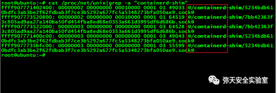 cat /proc/net/unix|grep -a "containerd-shim"