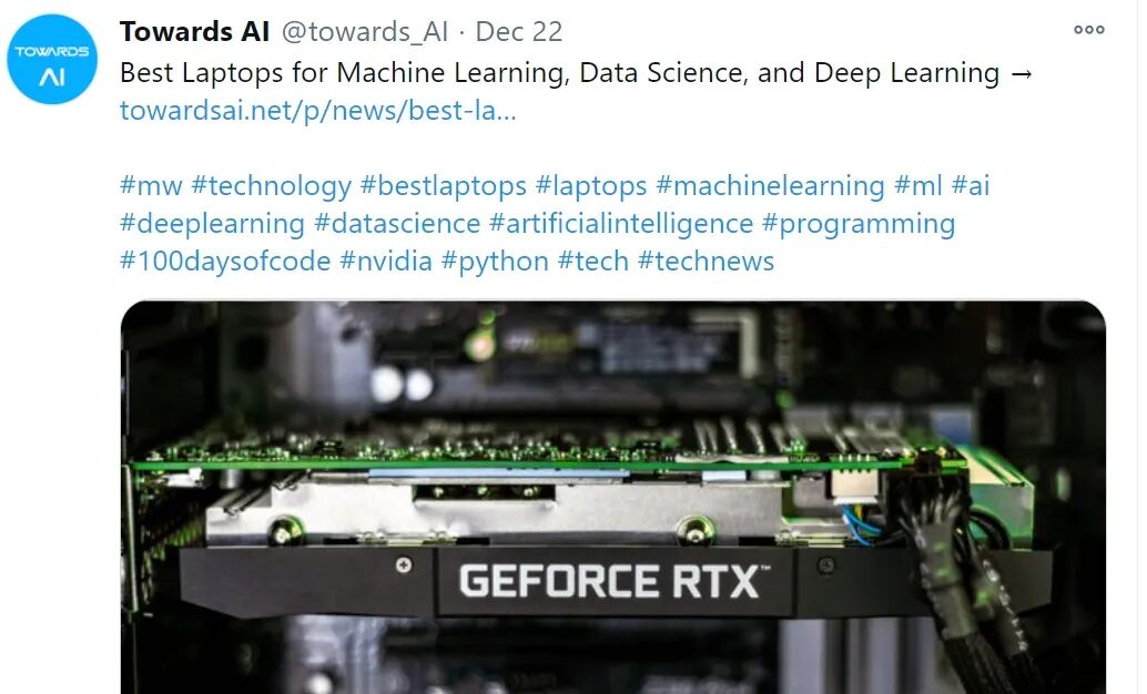 选自 | Medium 作者 | Towards AI Team一份来自 Towards AI 的关于机器学习、数据科学和深度学习的最佳笔记本电脑。在预算范围内,入手最适合的笔记本。