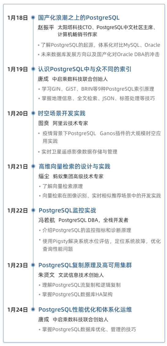 PostgreSQL创新营课程表