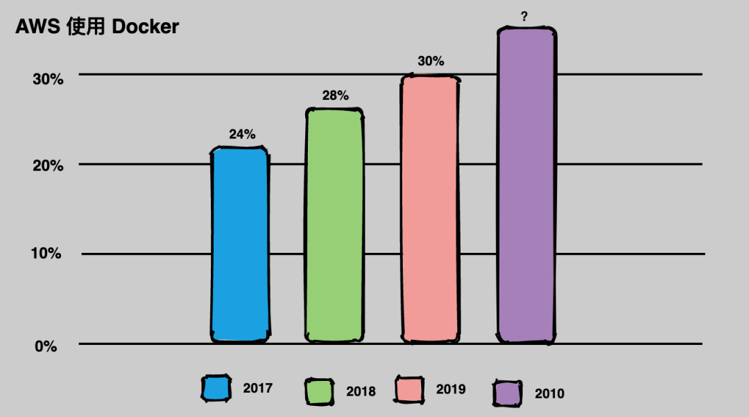 当前有30%以上的企业在其AWS环境中使用Docker,并且这个数字还在继续增长。