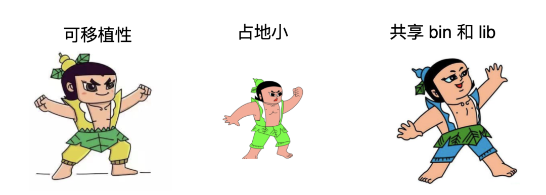共享 bin 和 lib:不同的容器可以共享 bin 和 lib,进一步节省了空间。