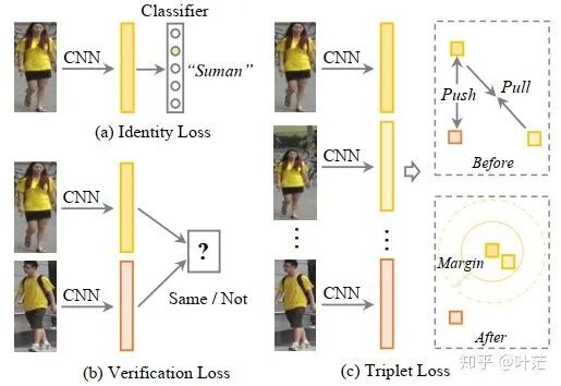 图 3. 三种常见的Re-ID度量学习(损失函数)方式