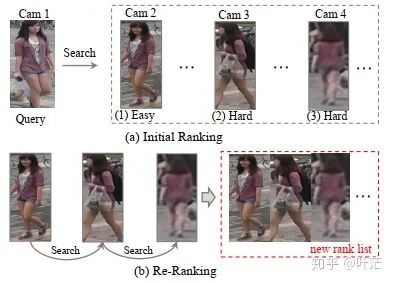 用学习好的 Re-ID 特征得到初始的检索排序结果后,利用图片之间的相似性关系来进行初始的检索结果优化,主要包括 重排序 (re-ranking)和 排序融合 (rank fusion)等。