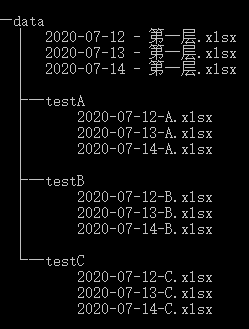 假设文件夹data有如下的目录结构(cmd 命令:tree /f)