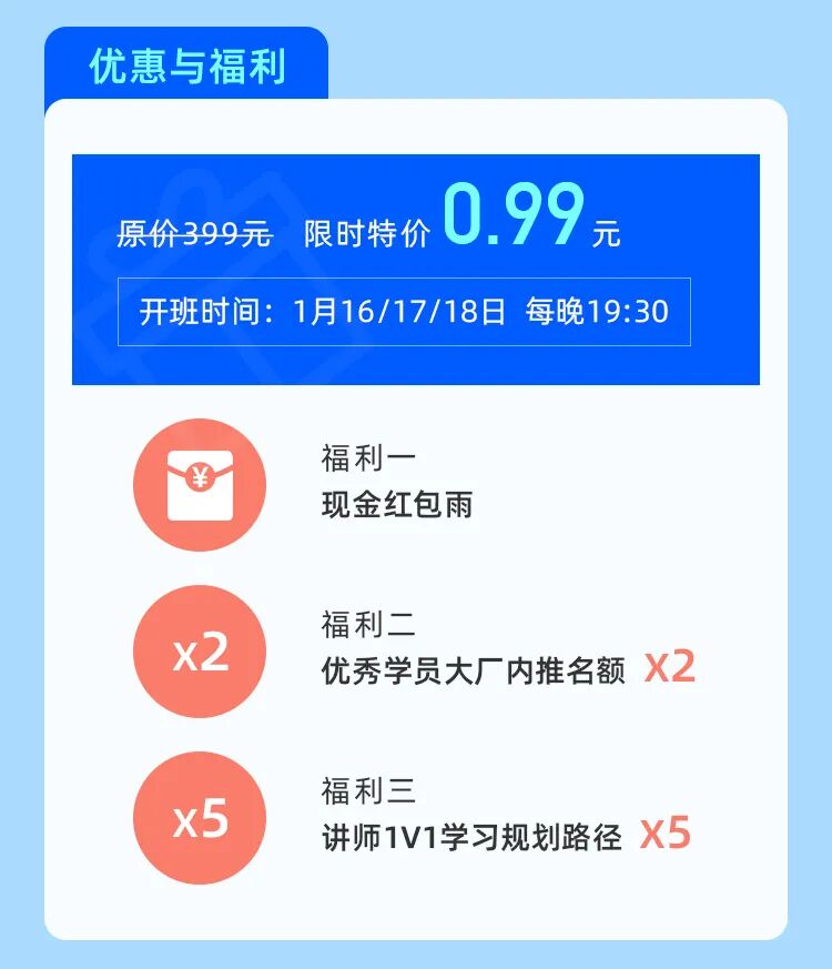 本次训练营开课时间(2021年1月16/17/18,每晚19:30),希望各位同学报名后: