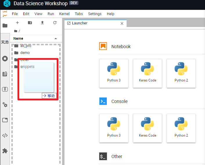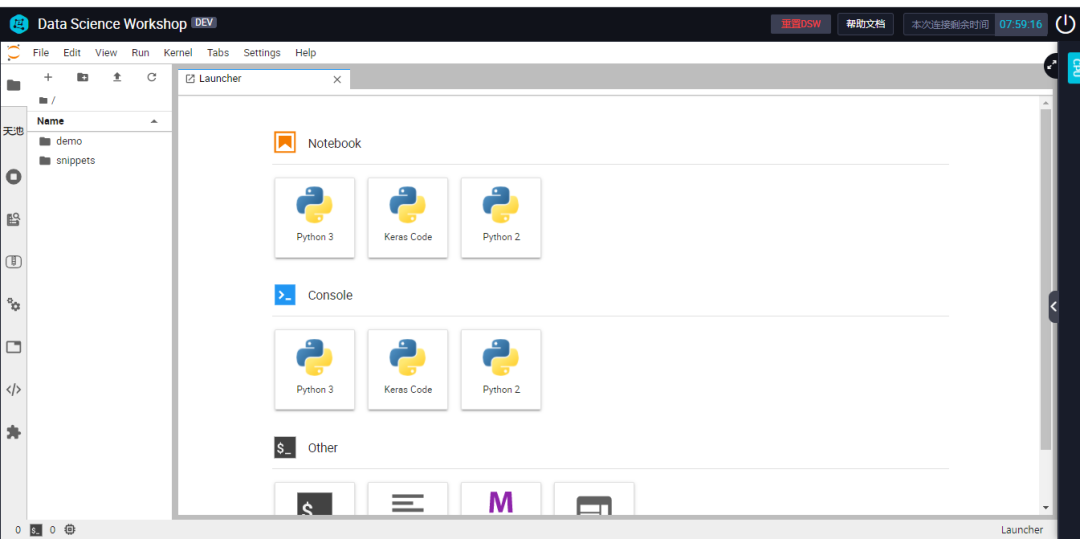 阿里云平台是在线 Jupyter,以 notebook 的形式运行代码,基础的页面如下所示: