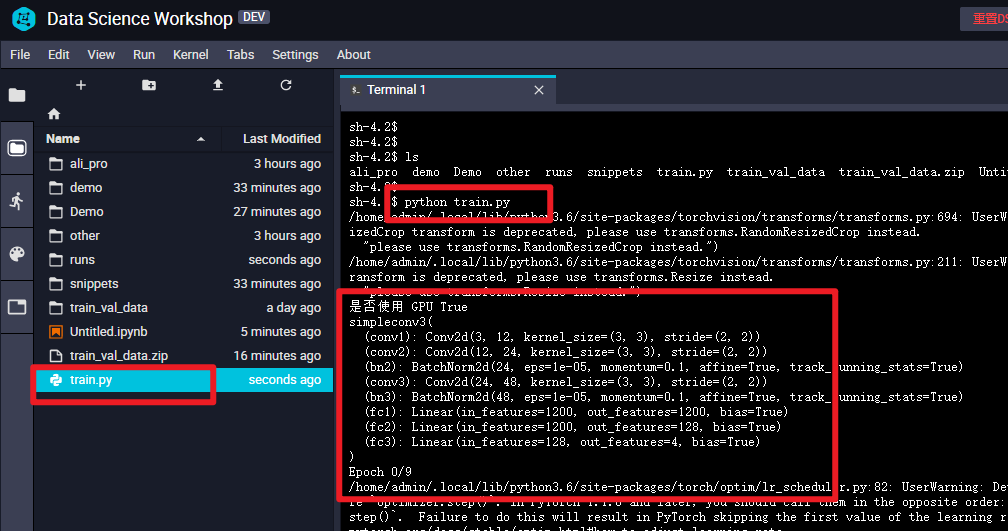 也许有读者不习惯使用 Notebook,没有关系,阿里云平台是也支持 Liunux 终端使用,只需上传脚本和数据,便可以运行程序了,开始你的炼丹之路了。