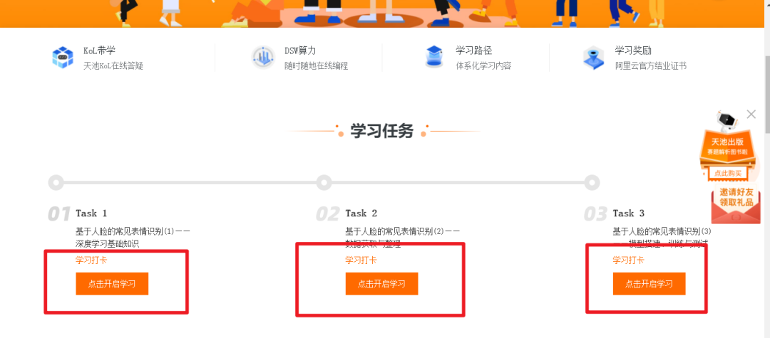 ,其中 Task1 是纯理论知识,Task 2、Task3 是实战项目,各位读者通过点击『点击开始学习』按钮即可学习对应 Task 的课程。