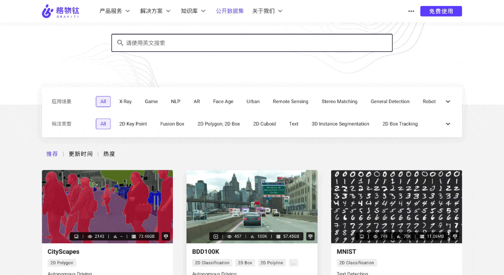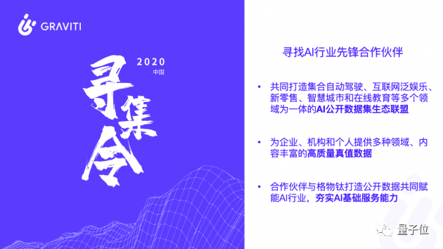 顾名思义,寻找数据集。分两步走。第一步,跟 AI 业内先锋公司合作。共同打造集合自动驾驶、互联网泛娱乐、新零售、智慧城市和在线教育等 AI 商业落地最迫切的 AI 公开数据集生态联盟。俗话说就是开个头、打个样,看到价值,就会有更多企业和组织加入。在寻集令发布会上,元戎启行、新石器、速腾聚创、觉非、爱驰汽车,酷家乐等等都 “站” 台支持。格物钛方面称,星星之火可以燎原,希望从寻集令第一枪开始,打造中国最具规模化的非结构化数据集平台。 类型上,全面覆盖图像、视频、语音和文本类型。资源上,兼具公开数据集以及 AI 头部企业数据集资源。领域上,则从商业落地最紧迫的自动驾驶、互联网泛娱乐、智慧工业、新零售、线上教育和直播等开始。此外,希望这个数据集平台,可以成为 GitHub 一样受开发者欢迎的社区,并且提供更多极致的数据集管理体验,包括安全等等题中之义的要求。实际上,虽然国内一直缺乏这样的数据集开源平台,但并不意味着业内没有尝试。之前创新工场联合国内头部 AI 公司发起 AI Challenger 大赛,百度、腾讯、华为、字节跳动等公司也都有数据集为核心资源的挑战赛。只是始终,缺乏一个 “全职” 展开这件事的人。而数据集之重要,AI 从业者都应该很清楚。 比如假设没有 ImageNet,那这波 AI 复兴应该还不会如此狂飙突进,是李飞飞李佳等华人科学家在数据集上的努力,加速催化了浪潮复兴。另外,数据集也能推动产学研更加紧密地合作,资源如果能更方便被利用,或许就会有更多力量加入其中,也就更有机会帮助实现该领域算法的提升和优化。说白了,公开共享数据集,就像是发起了一场打擂,产学研领域的各方高手,既是自我检测算法,也能不断让数据集所在场景,得到更高更强的推进。所以从这个角度,或许也不难想见,为啥能得到陆奇的支持。在奇绩创坛的 Demo Day 上,这个项目就被重点介绍过,而且陆奇还亲自 “站” 台为寻集令作了致辞。总而言之,好事一件,且终于有人做了。