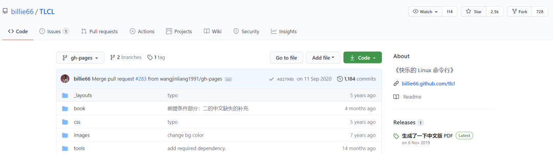 这个开源项目是:快乐的 Linux 命令行,主要内容包含:Shell、配置文件和Shell环境、常见任务和基本工具、编写 Shell 脚本(if、while、case、for 语句)等;