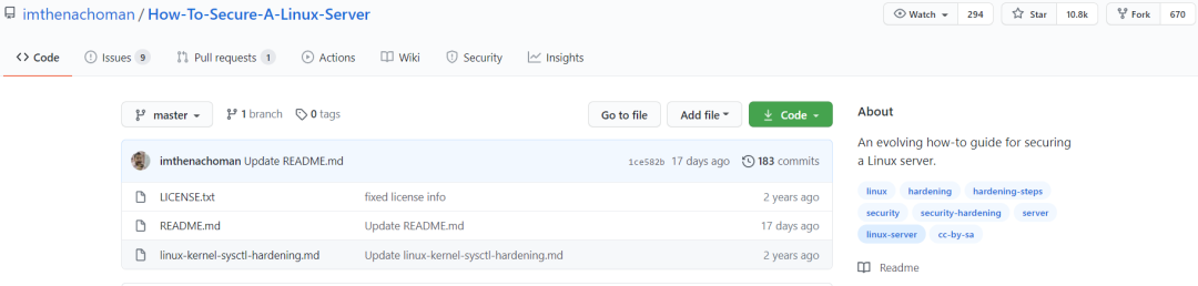 这个开源项目的目的是教您如何保护 Linux 服务器安全的方法指南,也希望能从中教给您一些有关安全性及其重要性的知识,包括:在你开始使用前的一些指南、SSH 远程服务器需要注意的点、网络、基础、审计方面的操作以及危险操作的注意事项等,同时希望你通过这个开源项目能够对 Linux 服务器安全有一定的认识并运用到实际情况之中。