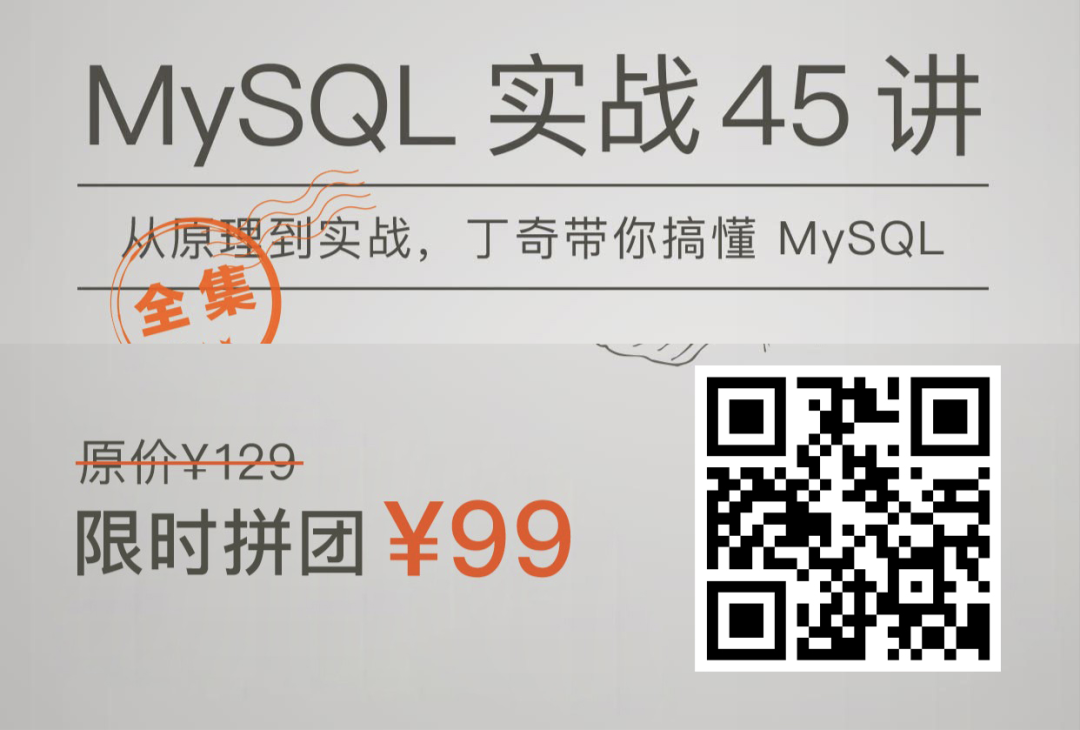 另外,这个专栏已经全部更新完毕,这就相当于订阅后不用等待,直接就可以学。最后,再强调一遍,《MySQL实战45讲》限时 89 元入手,立省 40 元,已有近 7w 人加入学习,想汲取行业大佬十年心法、认真学好 MySQL 的同学,请抓紧搭上这趟末班车。