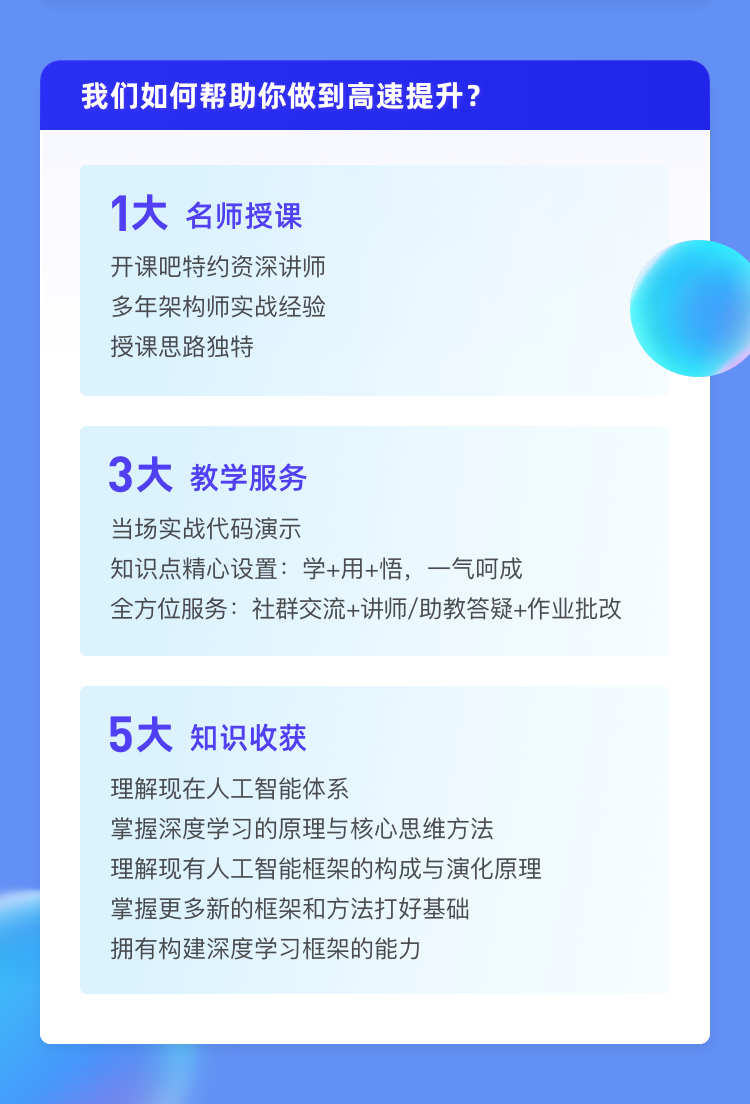 彻底掌握深度学习的原理,课程深入浅出,适合多个层次的学员,零基础也完全可以学习。密集的编程练习提升编程水平,帮助大家快速提升编程与算法能力。