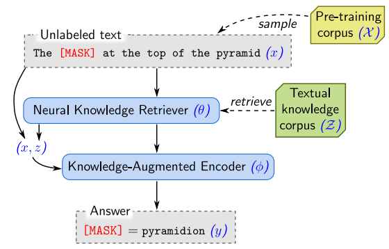 使用 REALM 进行无监督预训练,检索器和编码器经过了联合预训练。大规模模型可以利用预训练数据学习出令人惊讶的全局知识,这使得它们可以重建事实(Jiang et al., 2020)并在不接触外界上下文的情况下回答问题(Roberts et al., 2020)。然而,把这些知识隐式地存储在模型参数中效率很低,需要极大的模型来存储足量的信息。与之不同的是,最近的一些方法选择同时训练检索模型和大规模语言模型,在知识密集型 NLP 任务上获得了强大的结果,如开放域问答(Guu et al., 2020、Lewis et al., 2020)和语言建模(Khandelwal et al., 2020)。这些方法的主要优点是将检索直接集成到语言模型的预训练中,从而让语言模型效率更高,专注于学习自然语言理解中更具挑战性的概念。因此在 NeurIPS 2020 EfficientQA 竞赛中的最佳系统依赖于检索(Min et al., 2020)。检索是很多生成任务的标准方法,例如文本摘要和对话此前已大量被摘要生成所替代 (Allahyari et al., 2017)。检索增强生成可以将两个方面的优点结合在一起:检索段的事实正确性、真实性以及所生成文本的相关性和构成。检索增强生成对于处理过去困扰生成神经模型的失败案例尤其有用,尤其是在处理幻觉(hallucination)上(Nie et al., 2019)。它也可以通过直接提供预测依据来帮助使系统更易于解释。少样本学习