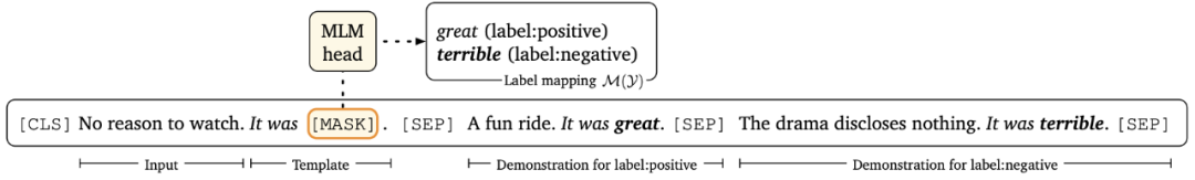 Prompt-based 微调使用模板化的提示和演示(Gao et al., 2020)。在过去几年中,由于预训练的进步,给定任务的训练样本数量持续减少(Peters et al., 2018、Howard et al., 2018)。我们现在正处在可以使用数十个示例来完成给定任务的阶段(Bansal et al., 2020)。自然地,人们想到了少样本学习变革语言建模的范式,其中最为突出的例子就是 GPT-3 中上下文学习的方法。它可以根据一些输入 - 输出对和一个提示进行预测。无需进行梯度更新。