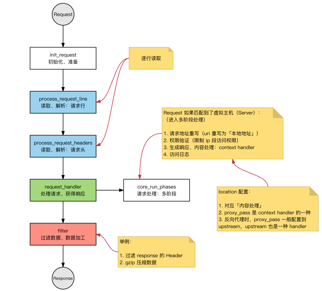 ②phase handler:此类型的模块也被直接称为 handler 模块。主要负责处理客户端请求并产生待响应内容,比如 ngxhttpstatic_module 模块,负责客户端的静态页面请求处理并将对应的磁盘文件准备为响应内容输出。