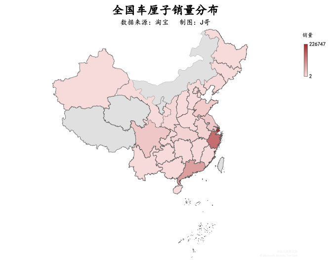 利用省份和付款人数字段数据制作地图,发现上海、浙江和广东等地车厘子销售量最大,西藏、青海和内蒙古销量较小。沿海地区的经济和人口优势,成为车厘子主要的消费市场。