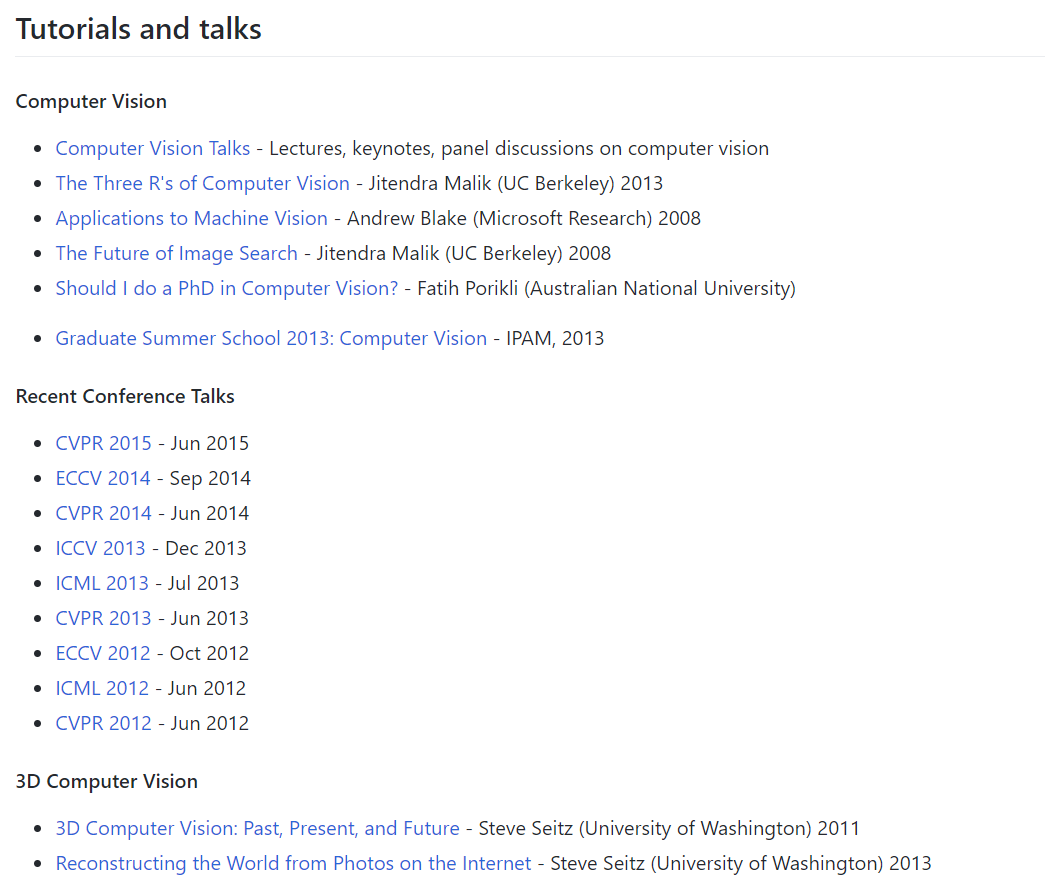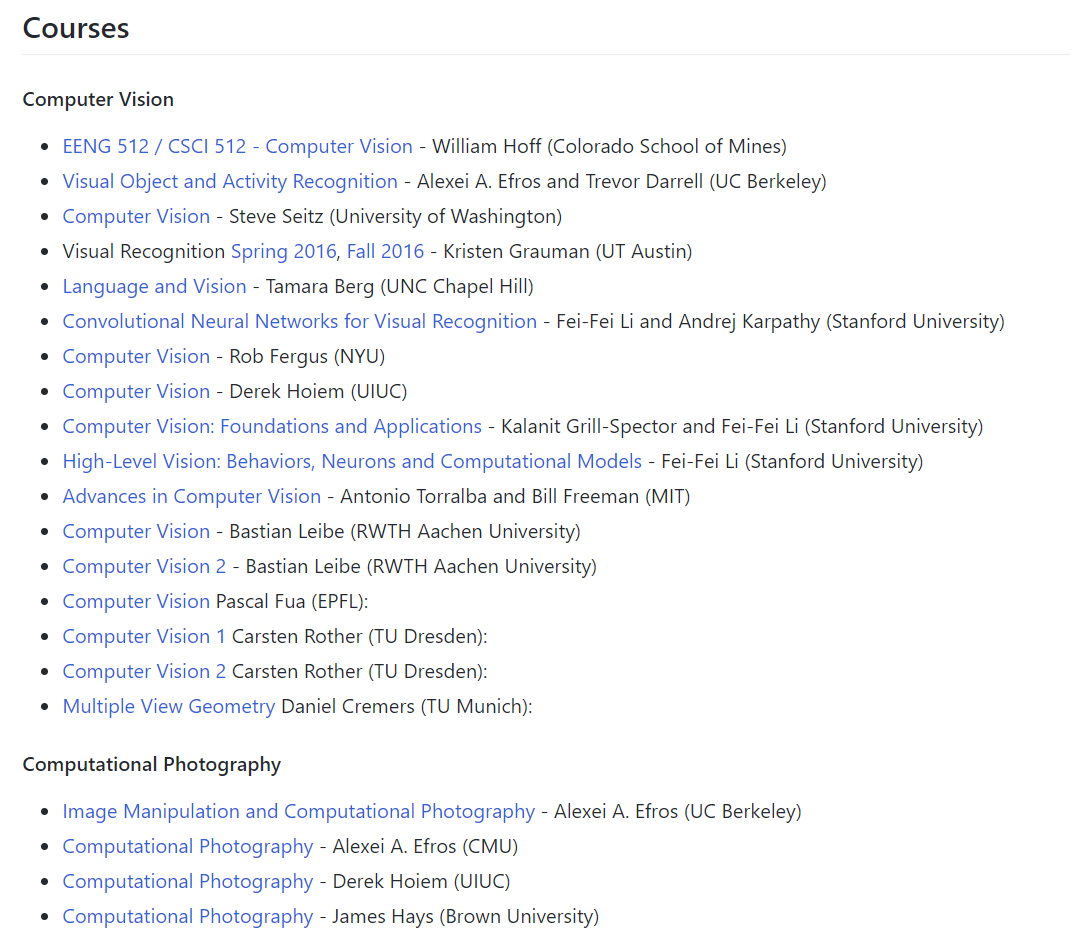 这里涵盖了大部分的视觉内容,包括各种数据集,paper,书籍,讲座,和名校网络课程资源。到目前为止已经有13.6k个star。推荐给各位CVer阅读,建议收藏,时常翻阅!